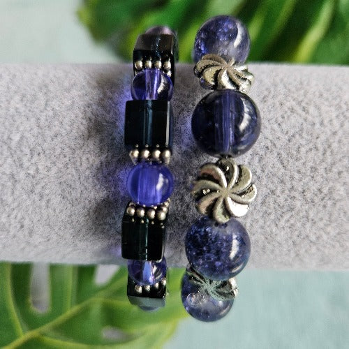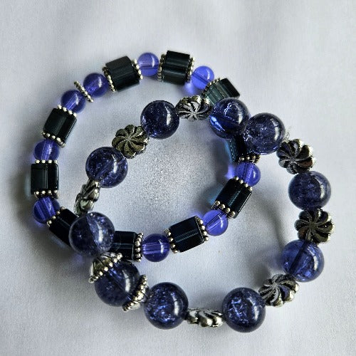 Länge ca. 18 cm, 2er-Set, Glas-/ Acrylperlen, Metall goldfarbig.