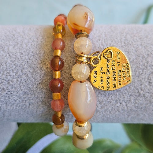 Länge ca. 18 cm, Steinperlen, Carneol, Metall goldfarbig.