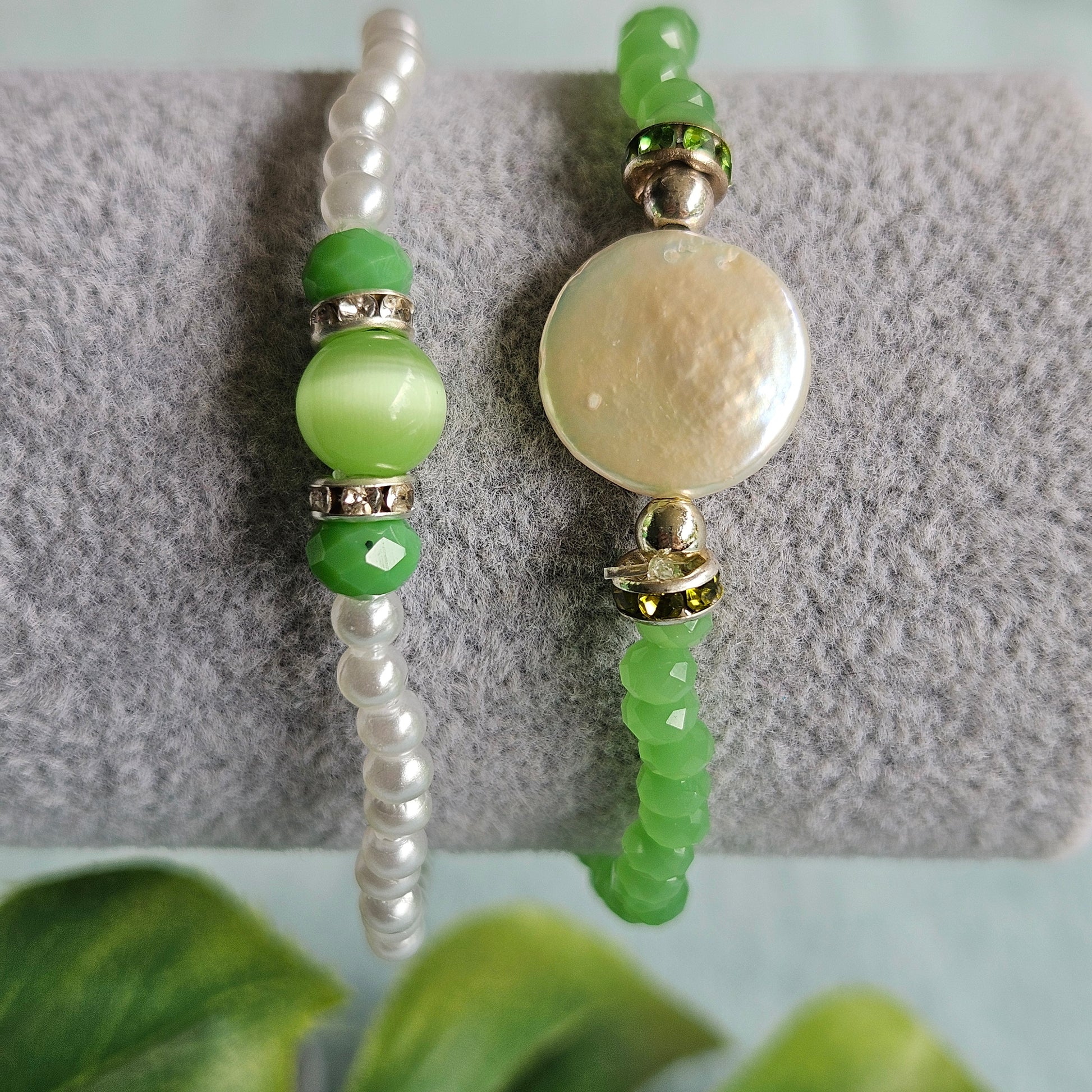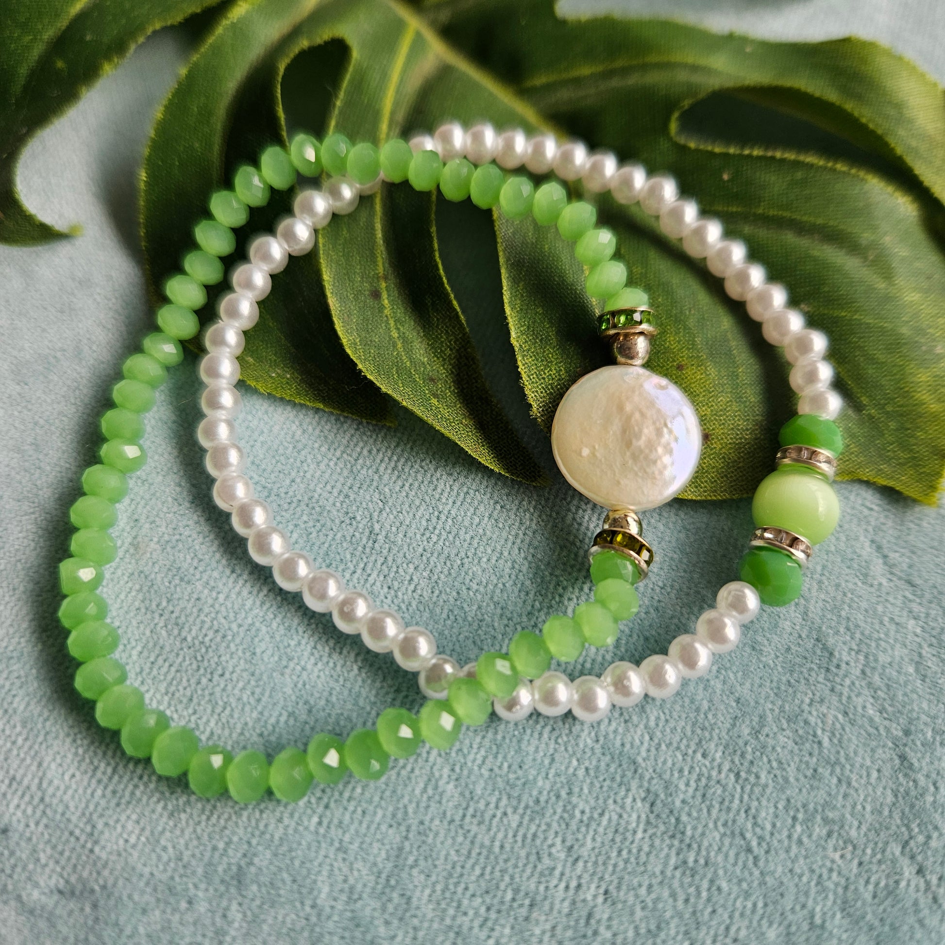 Länge ca. 18 cm, Glas-/ Wachs-/ Keshi-Perlen, Metall silberfarbig.