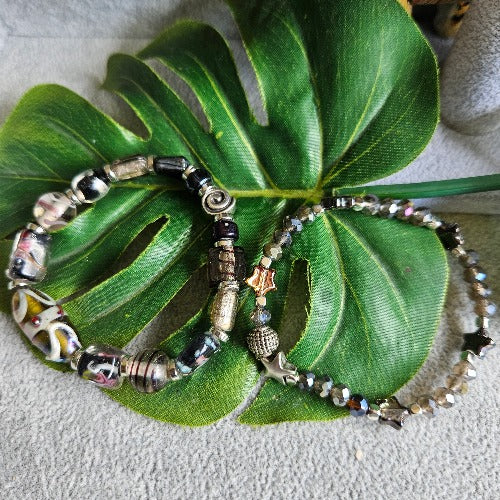 Länge ca. 18 cm, 2er-Set, Glasperlen, Metall silberfarbig.