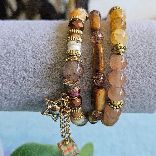 Länge ca.18 cm, 3er-Set, Stein-/ Acrylperlen, Metall goldfarbig.