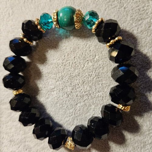 Länge ca. 18cm, Facettierte Kristallperlen, Kugel Naturstein Metall goldfarbig.