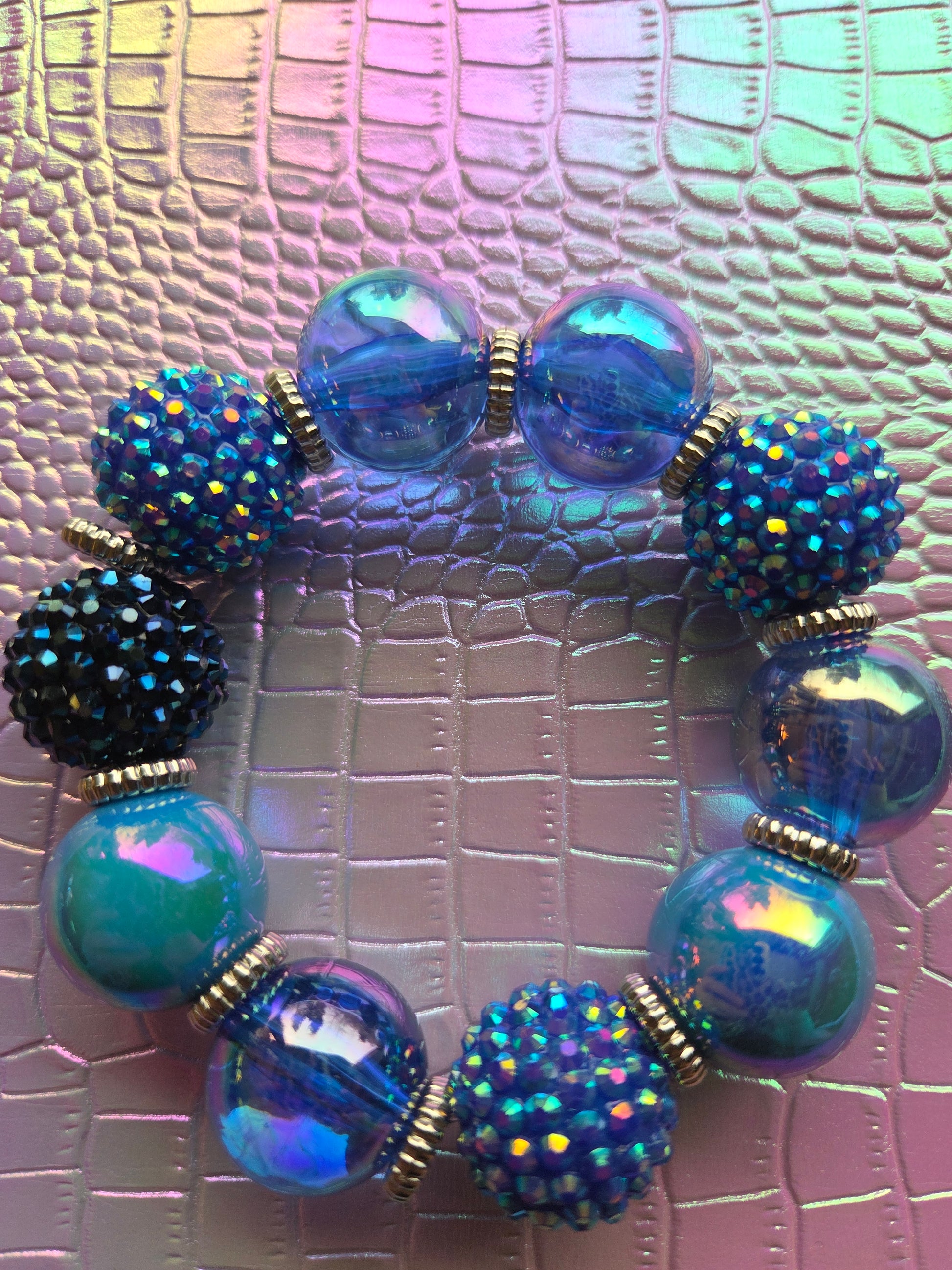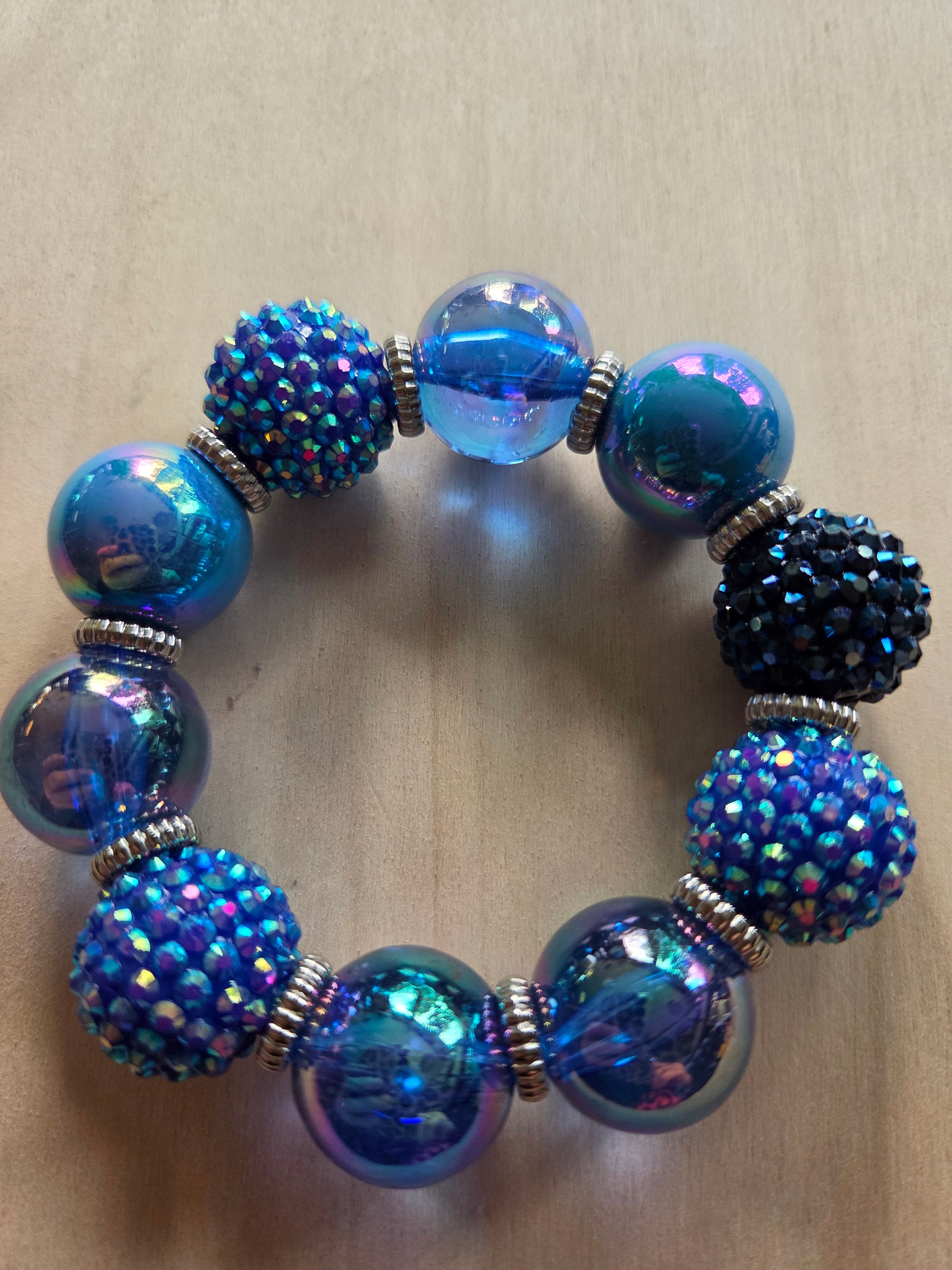 Armband Mittelblau mit Acryl UV und Glitzer Perlen