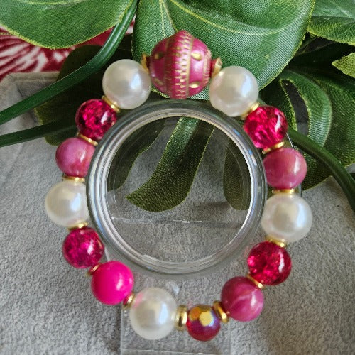 Armband Perlen groß Pink und Weiß