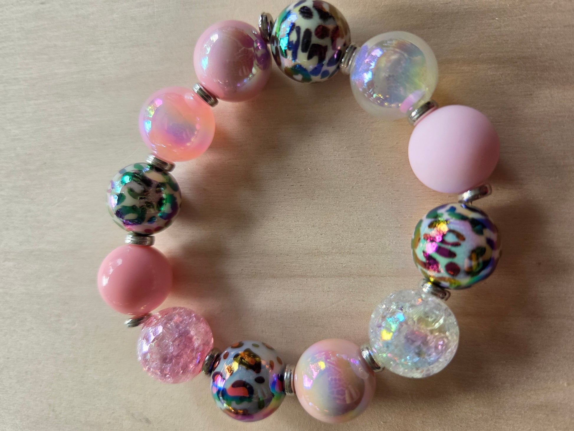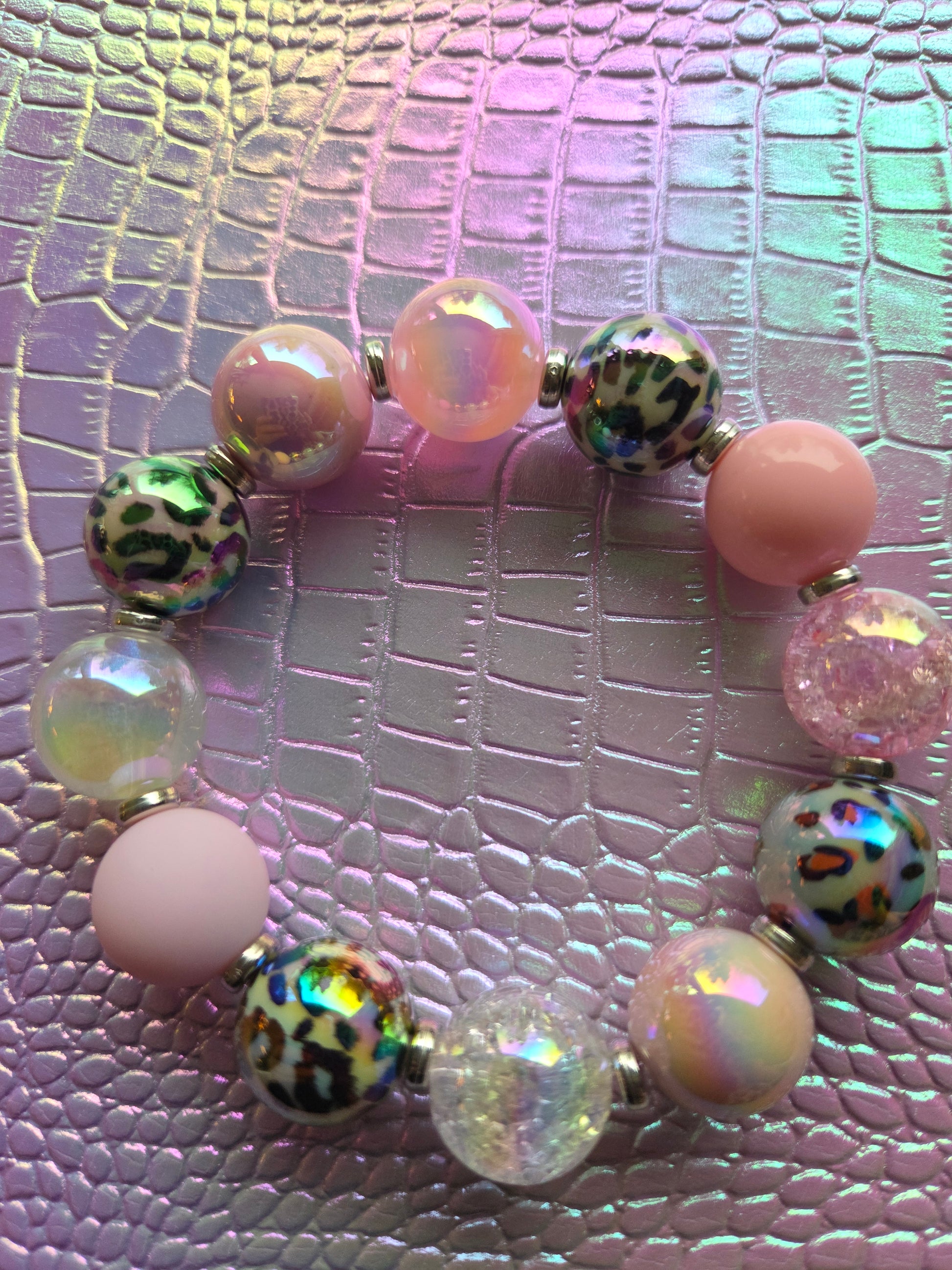 Armband Rosa Acryl UV Glitzer und Leopard Perlen