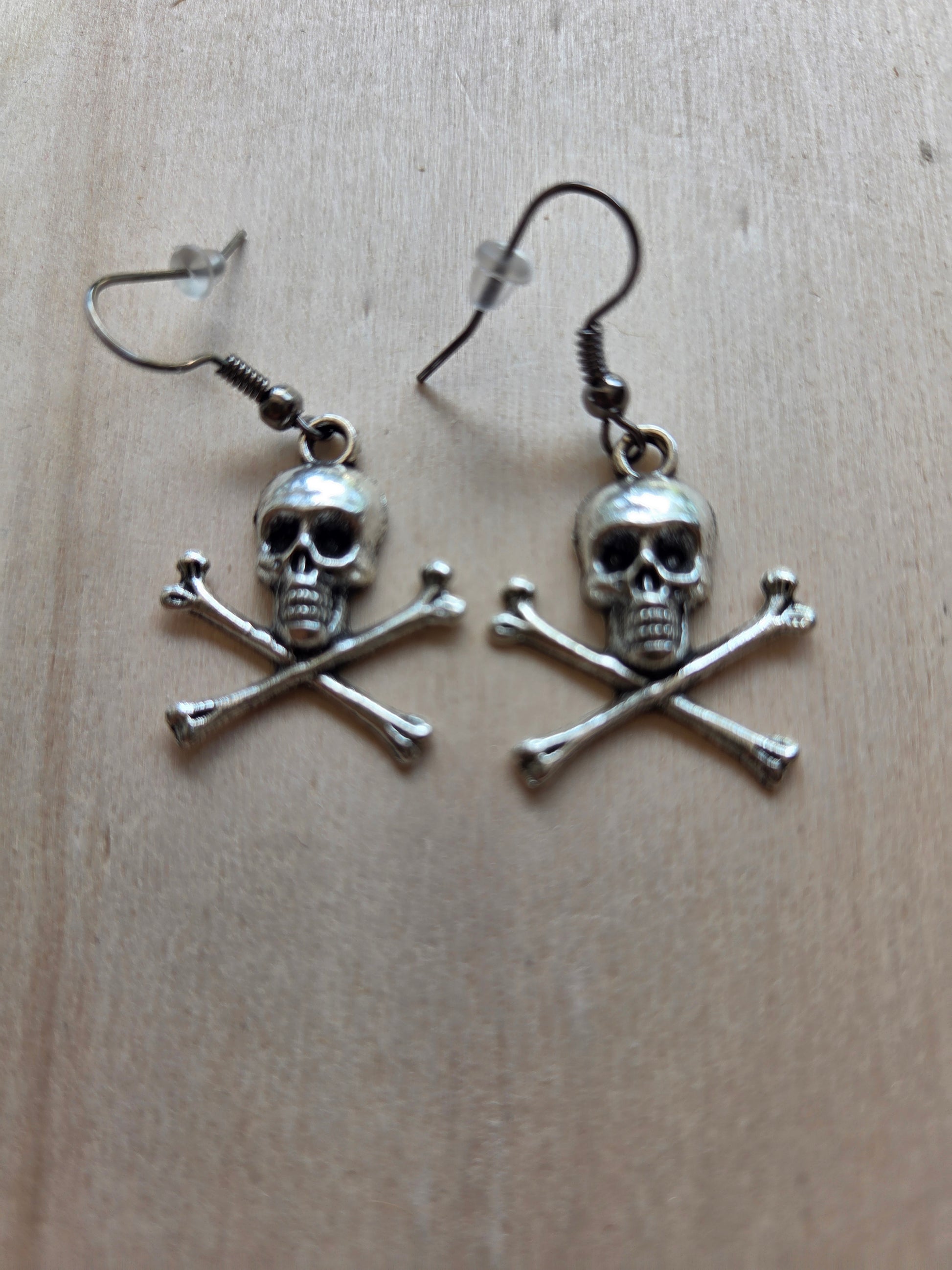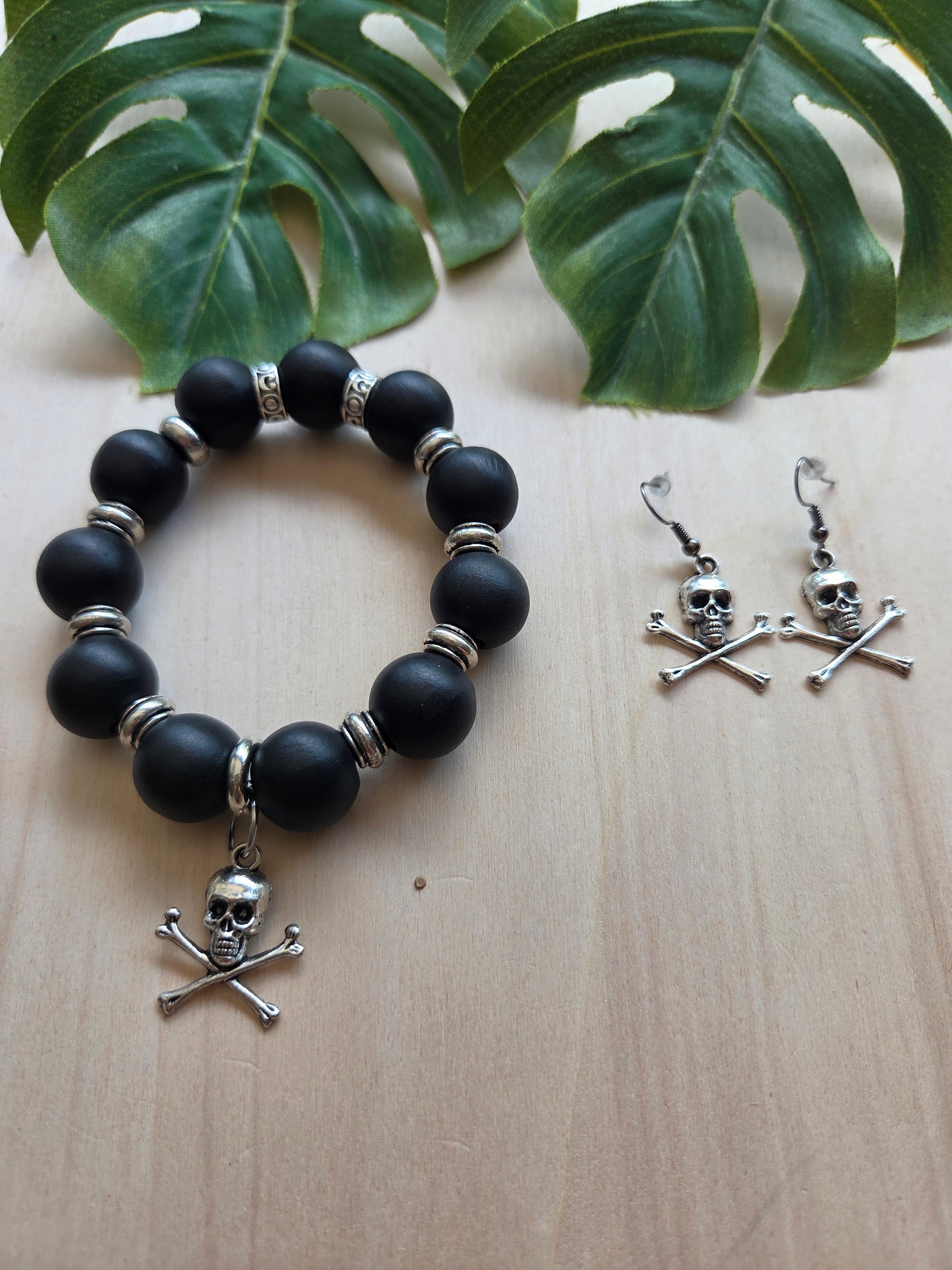 Material Holz schwarz mit Ohrringen Metall Silber farbig