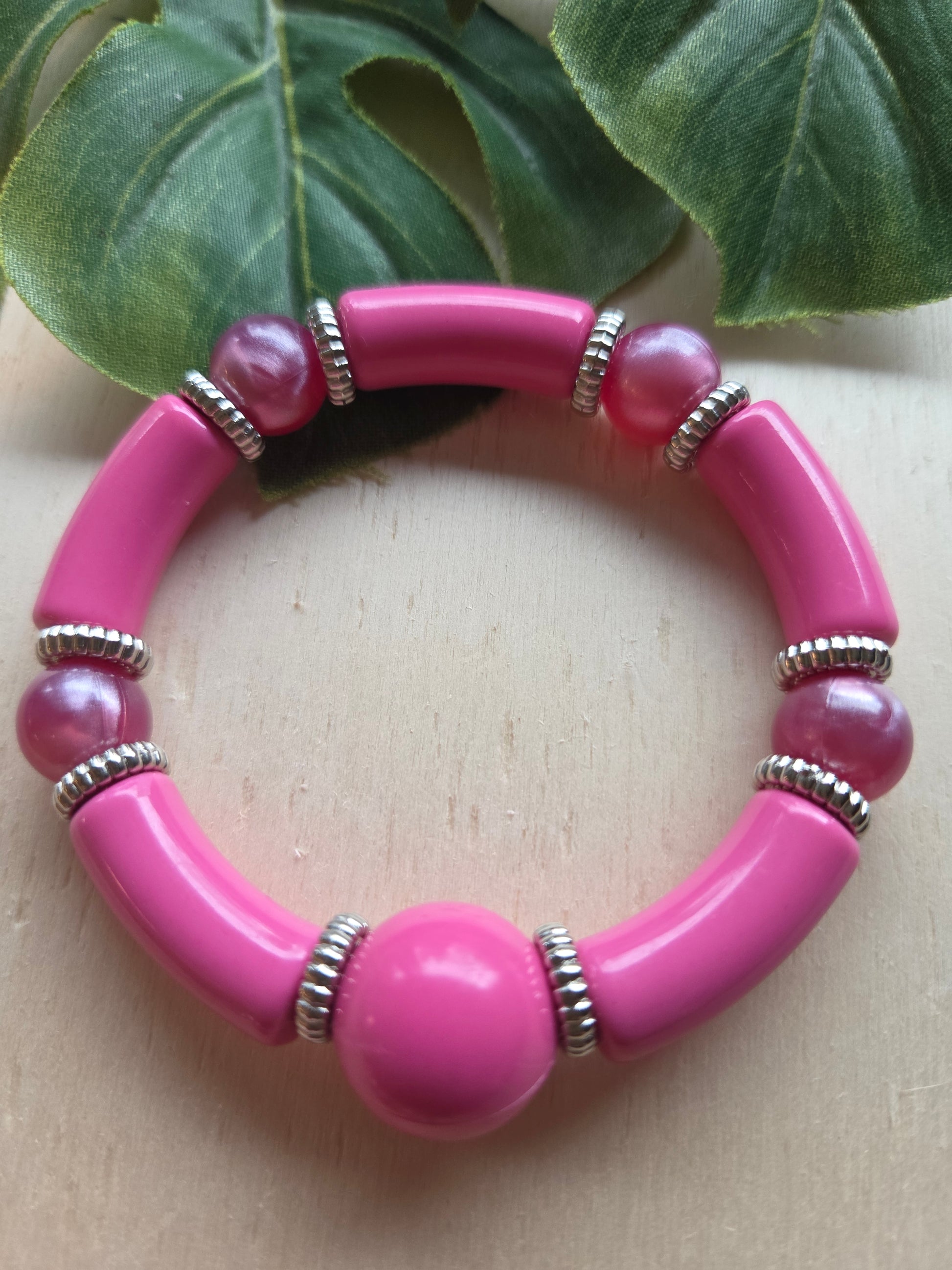 Armbänder 2 er Set Rosa Acryl Metall silberfarbig