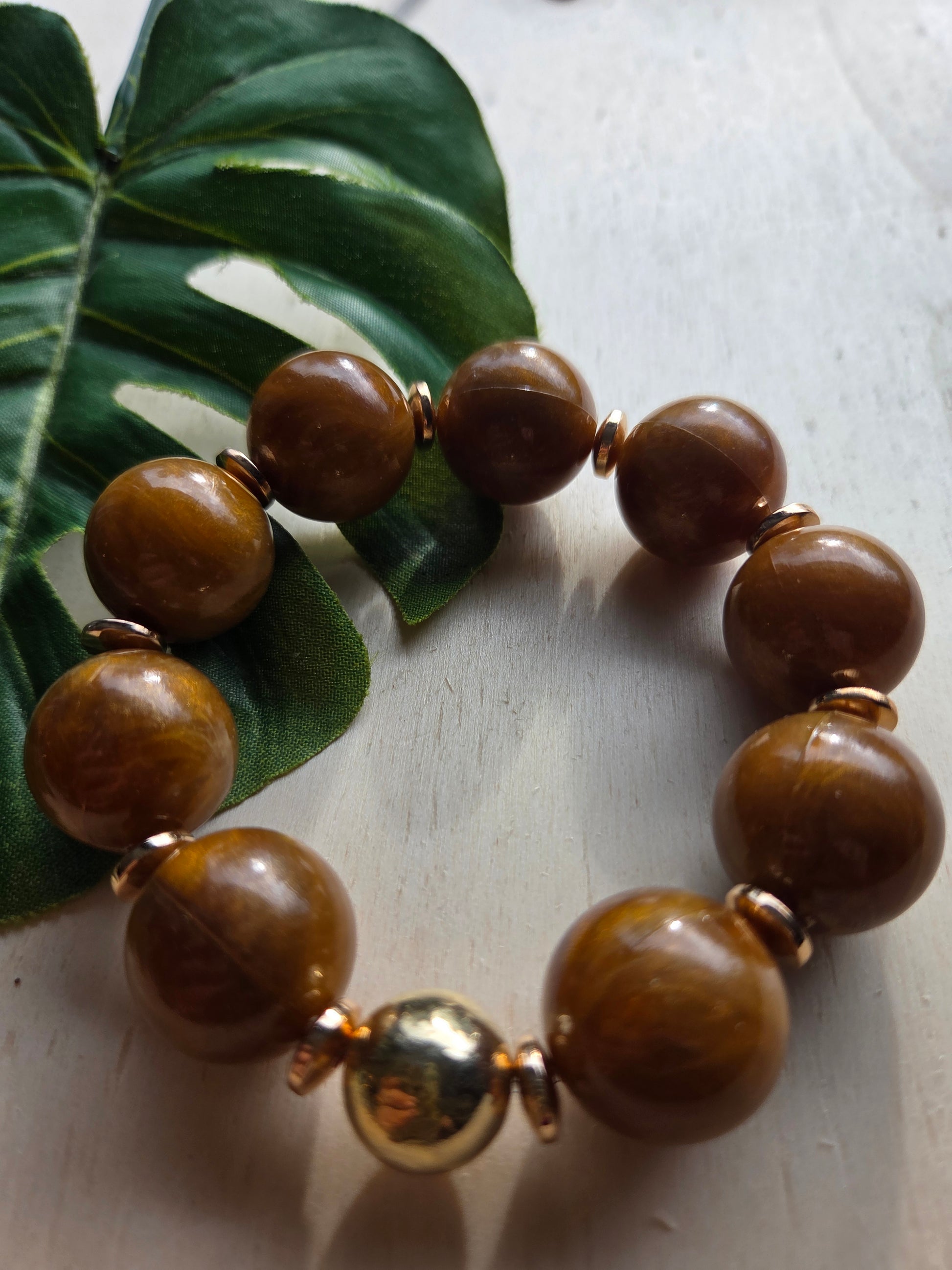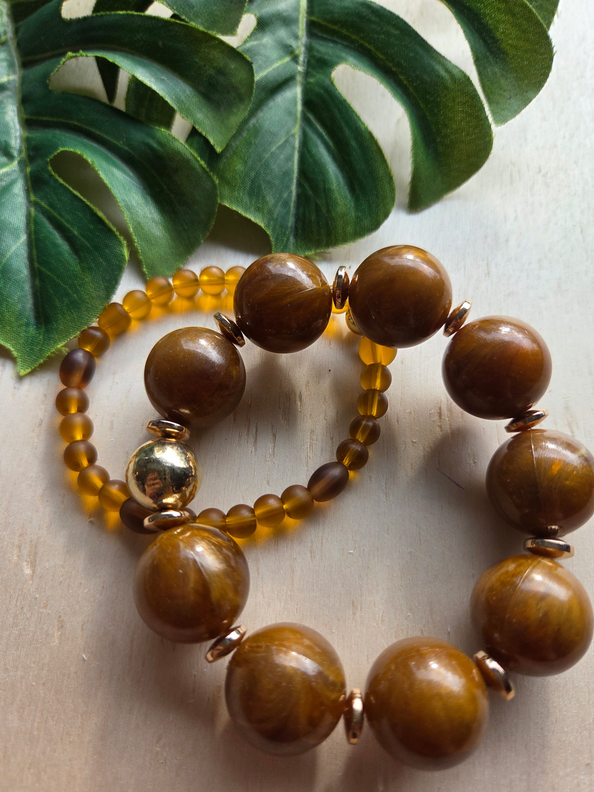 Armbänder 2 er Set braun Acryl Metall goldfarbig