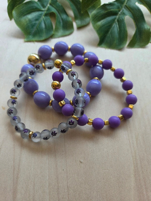 Material Holz Glas Acryl/Flieder 3 er Set Metall Gold farbig