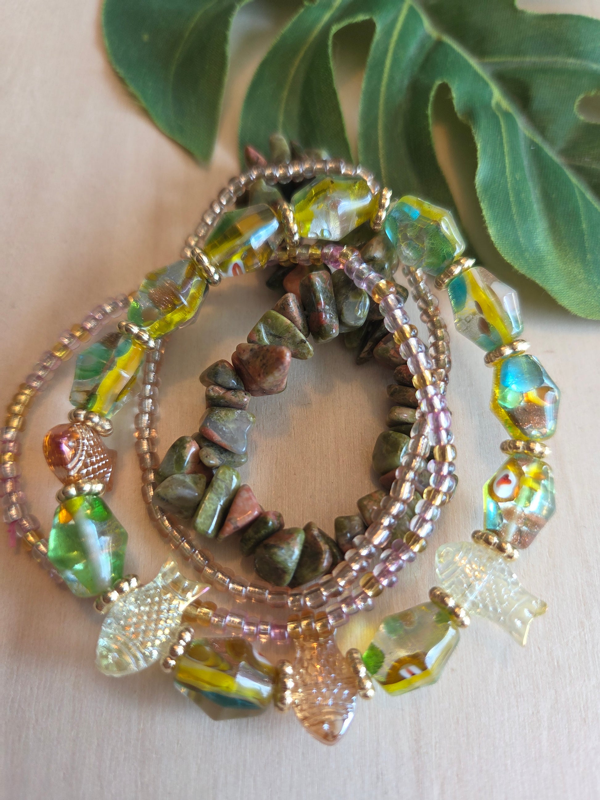 Armbänder 4 er Set schöne Perlen Länge ca. 18 cm elastisches Band