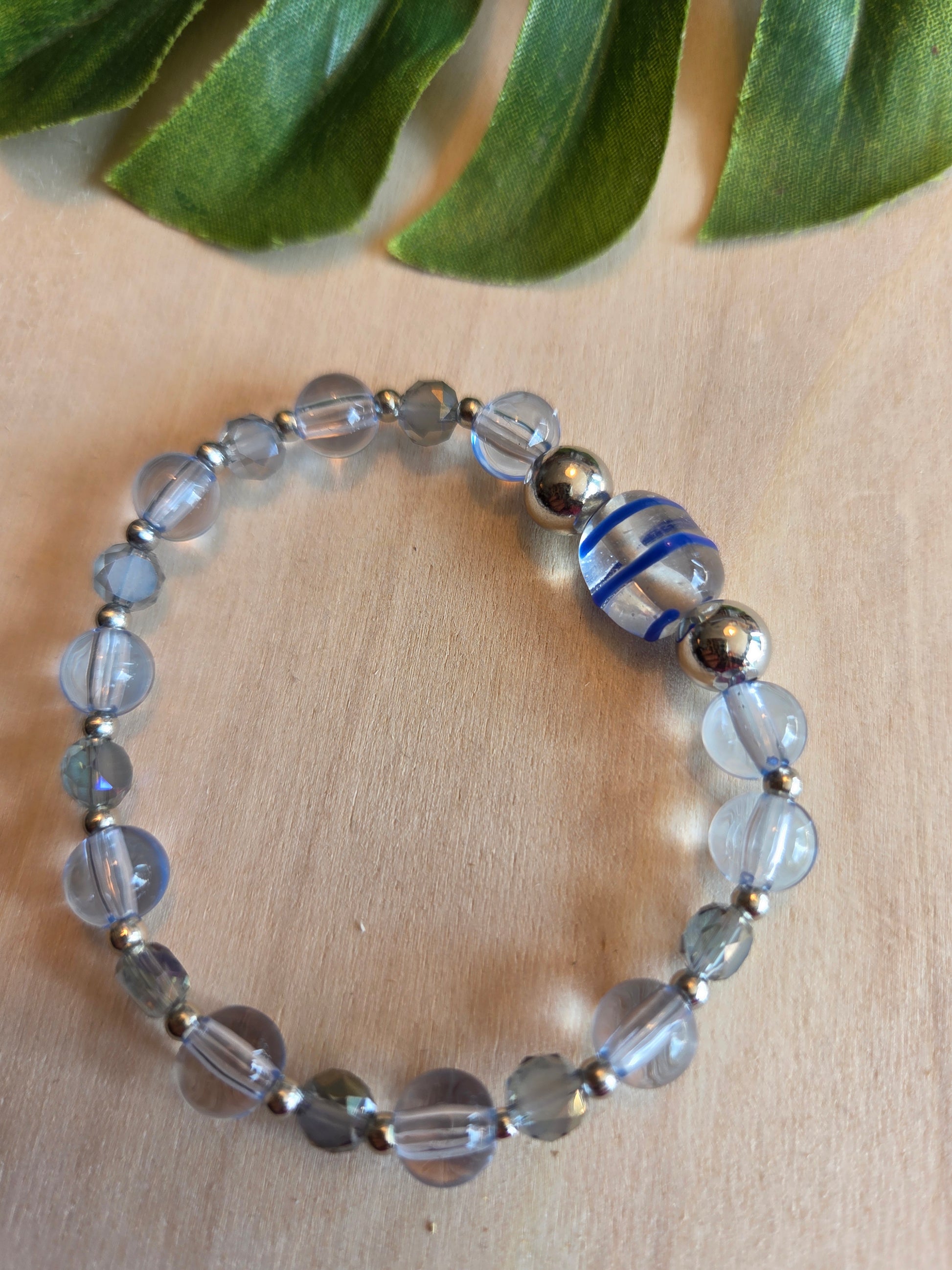 Material Perlen Glas/Acryl hellblau Metall silberfarbig