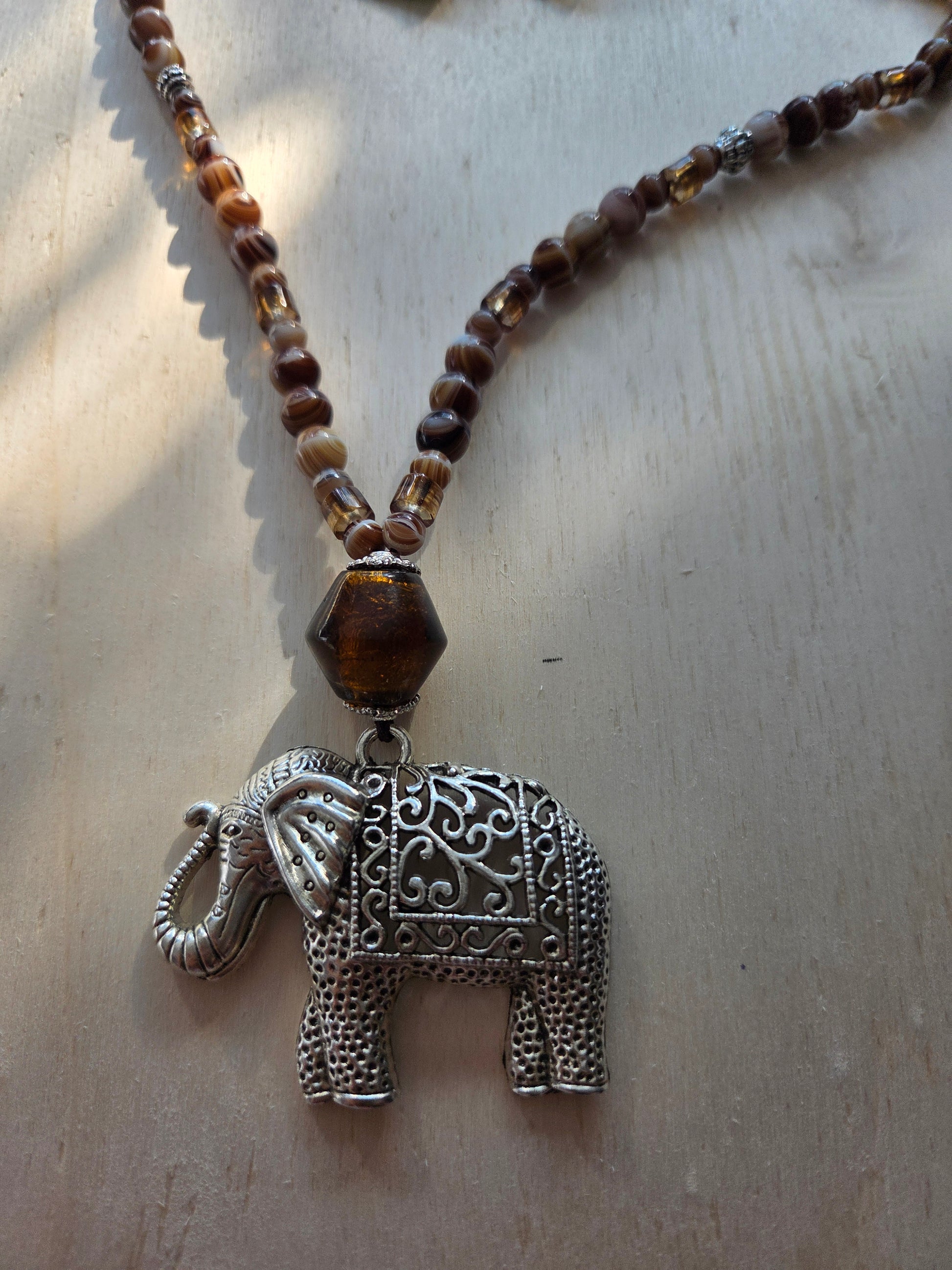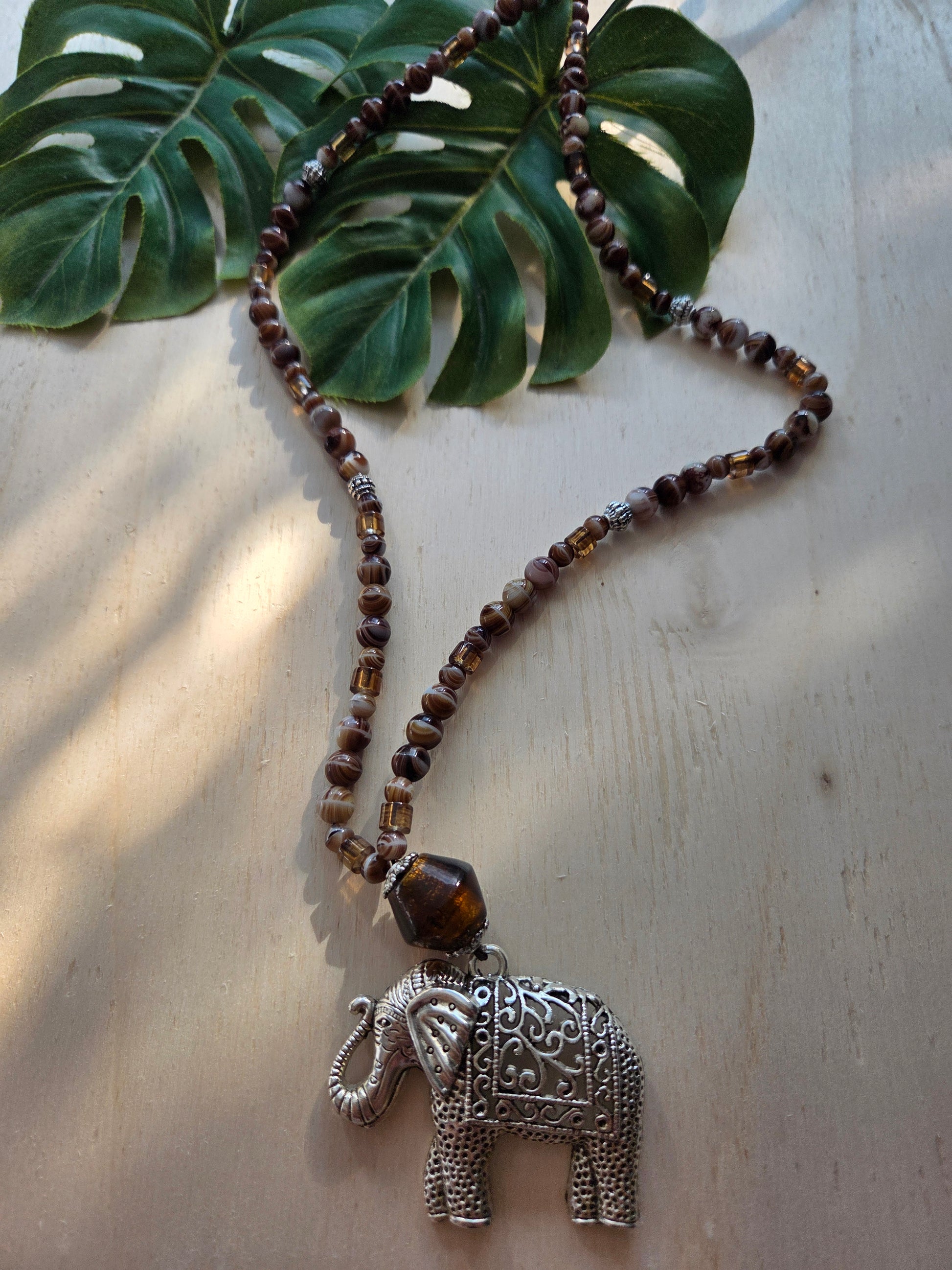 Halskette braun Stein mit AH Elefant