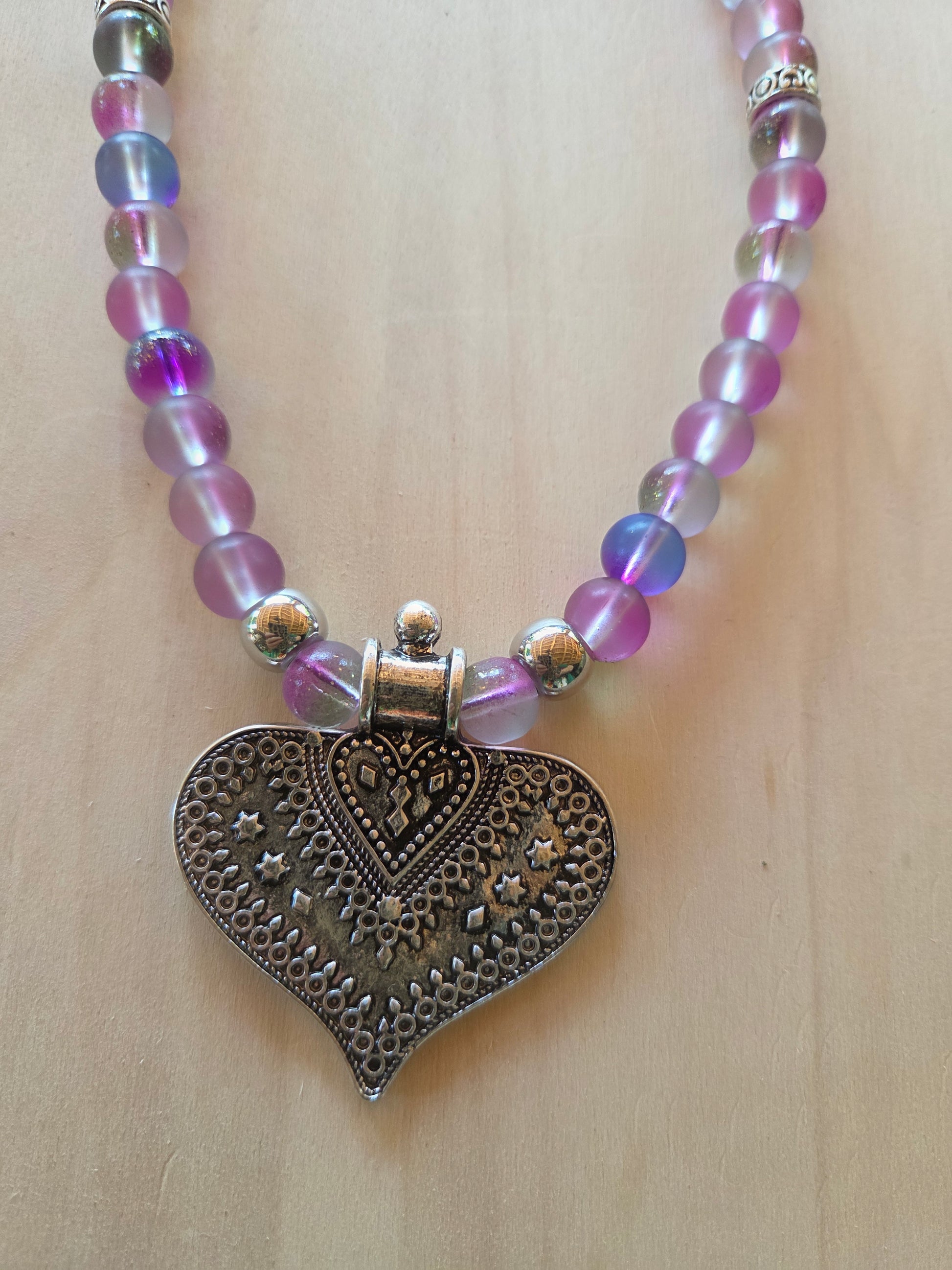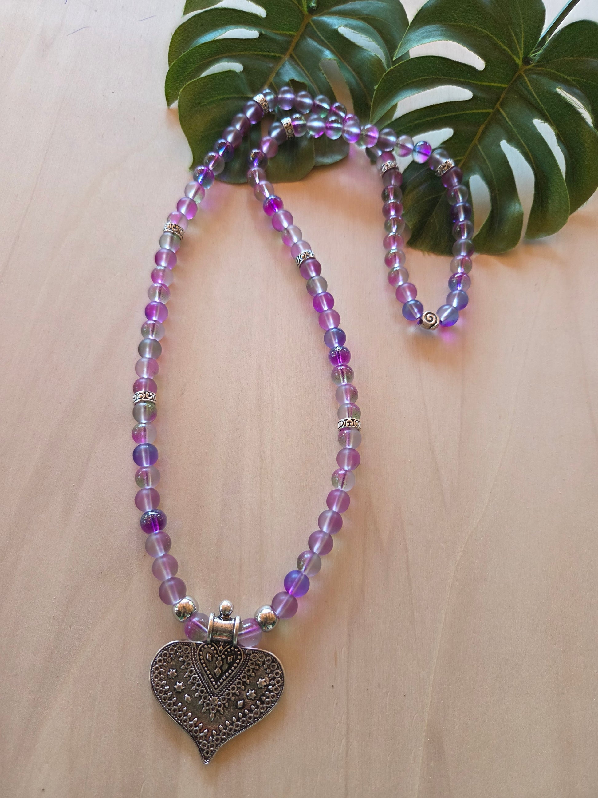 Halskette Material Glas Lila/Klar Metall silberfarbig