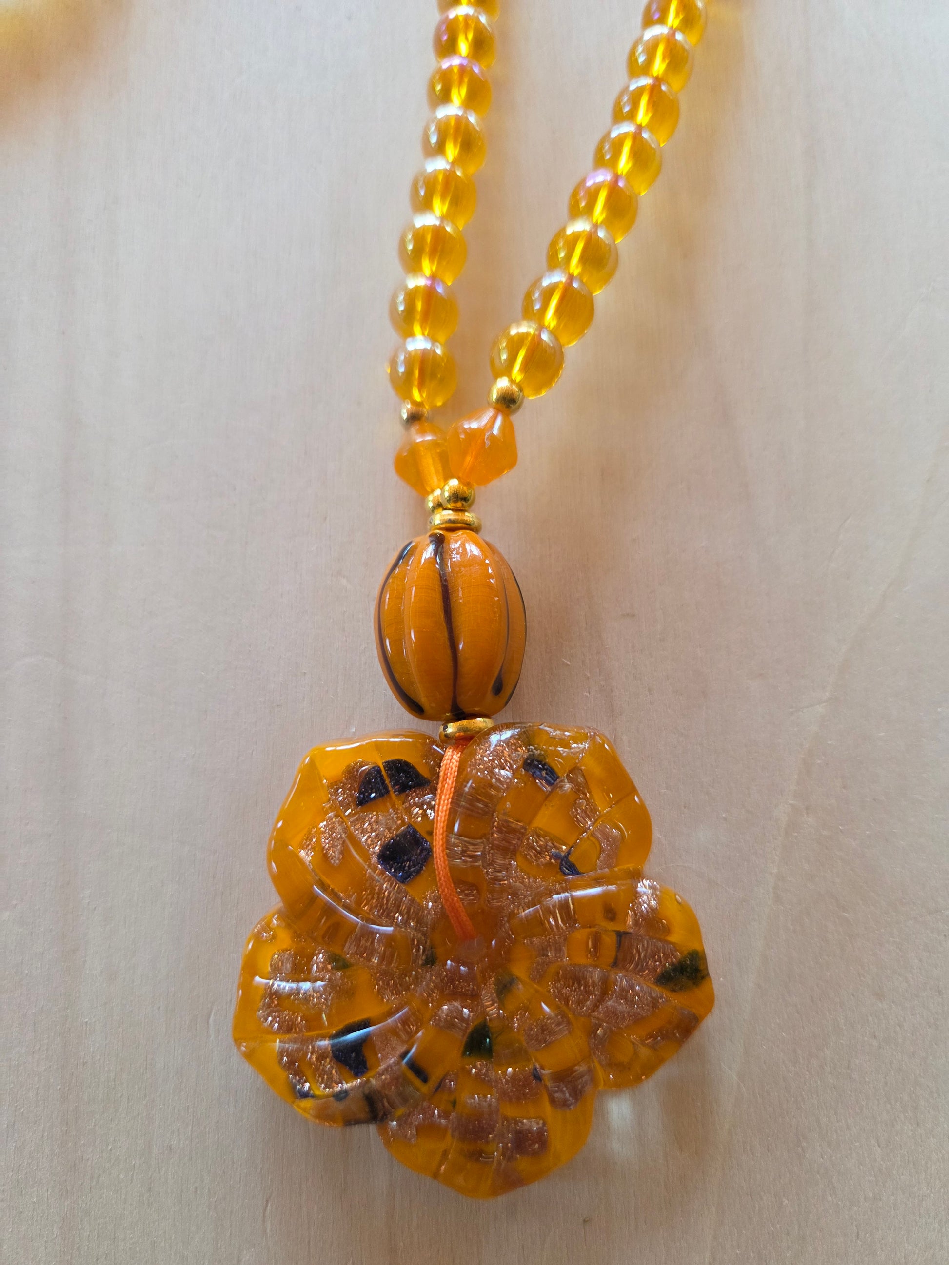 Halskette Material Glas Orange Metall goldfarbig Länge 83 cm AH 7x5 cm