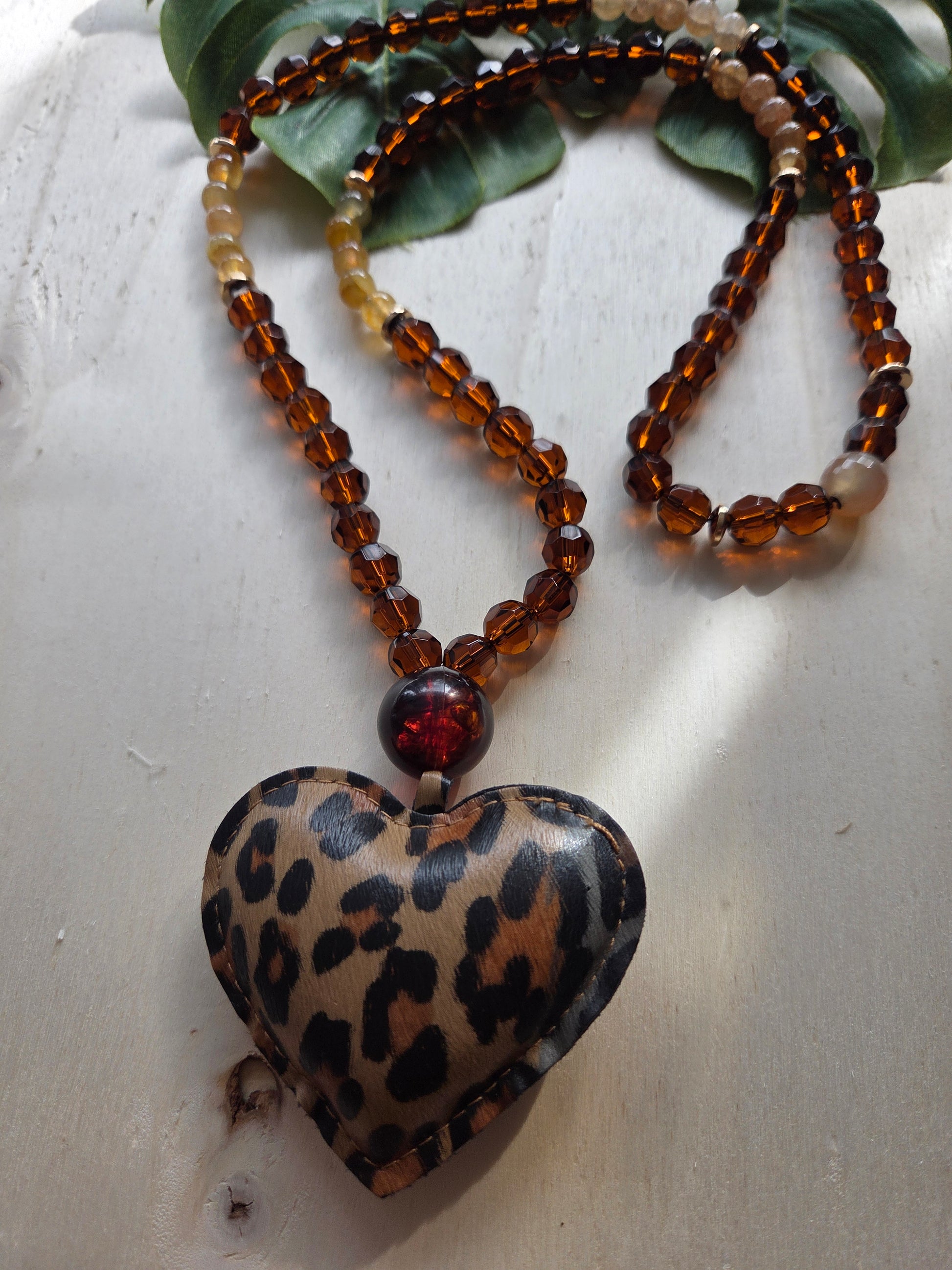 Halskette Glas/Stein mit Leo Herz groß