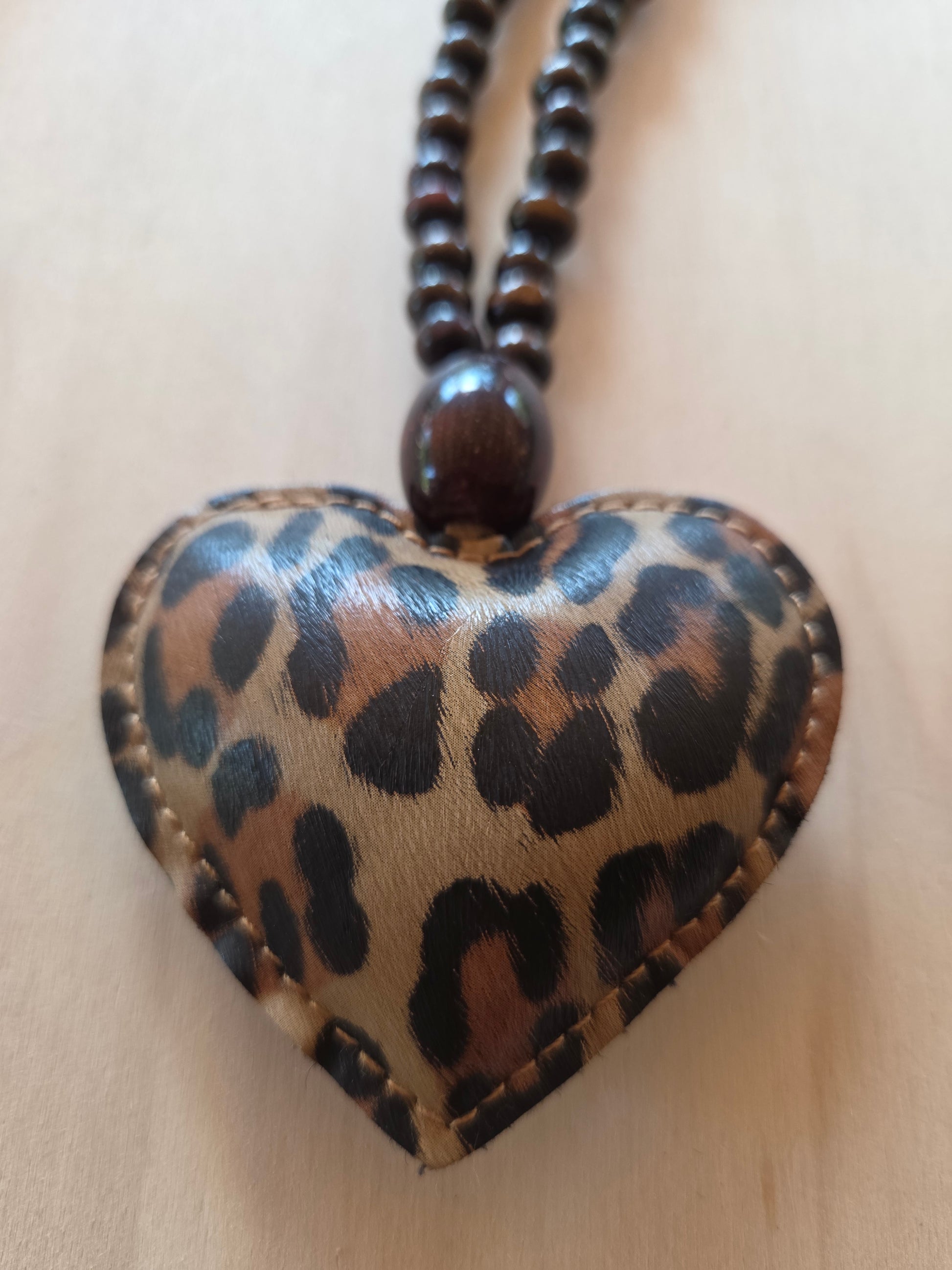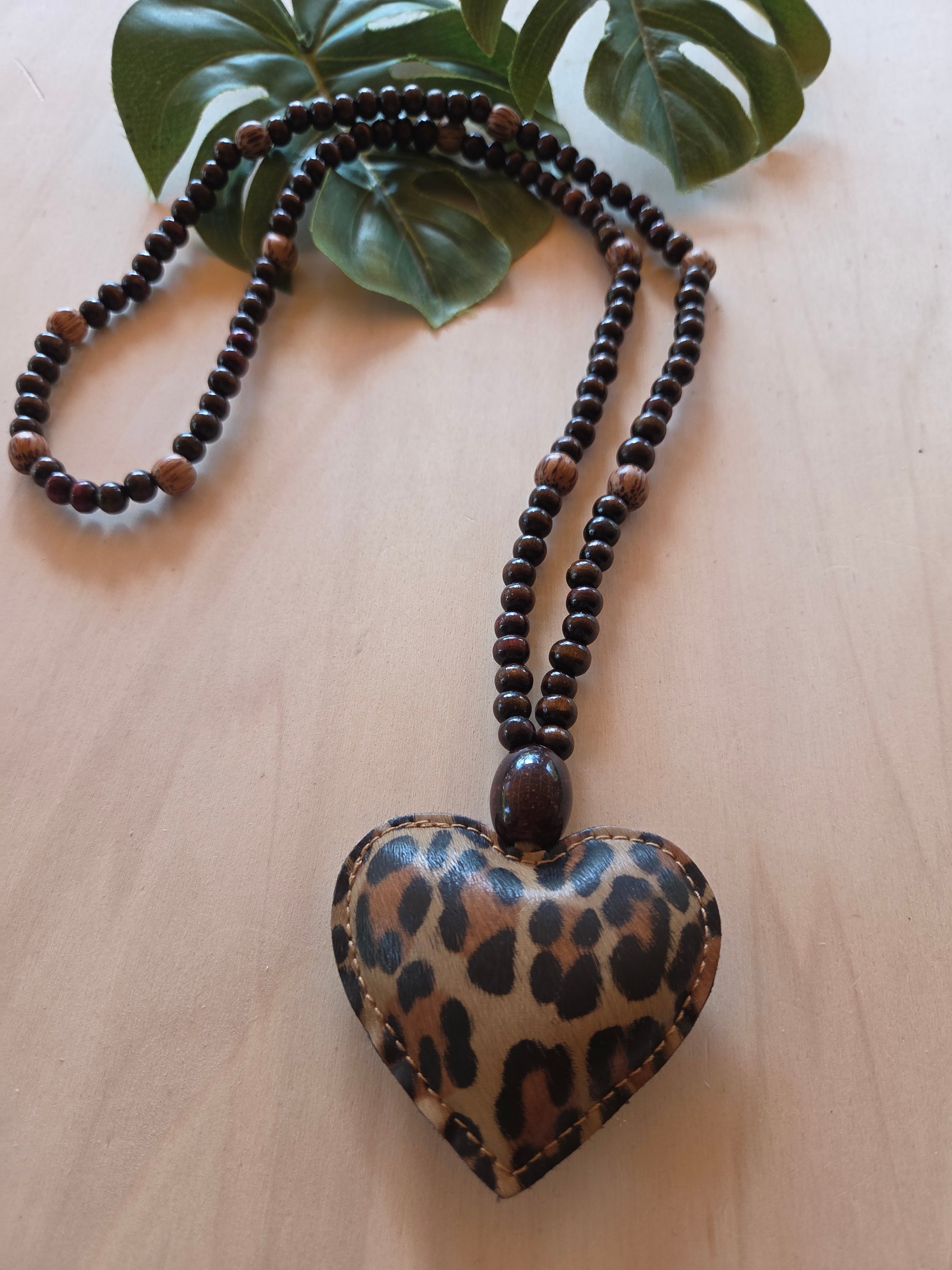 Halskette Holzperlen mit Leo Herz groß braun