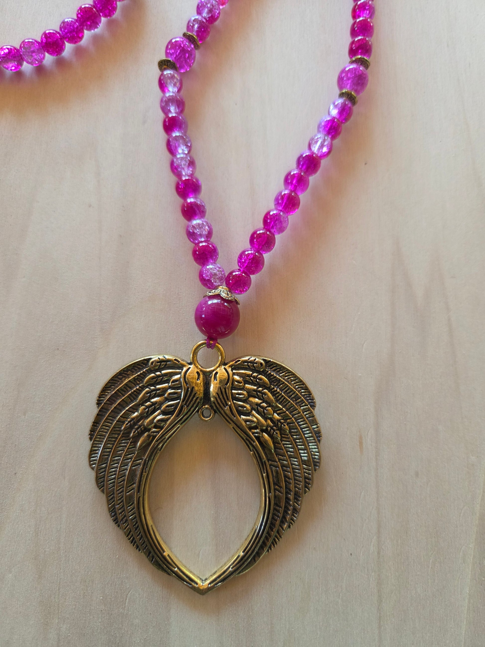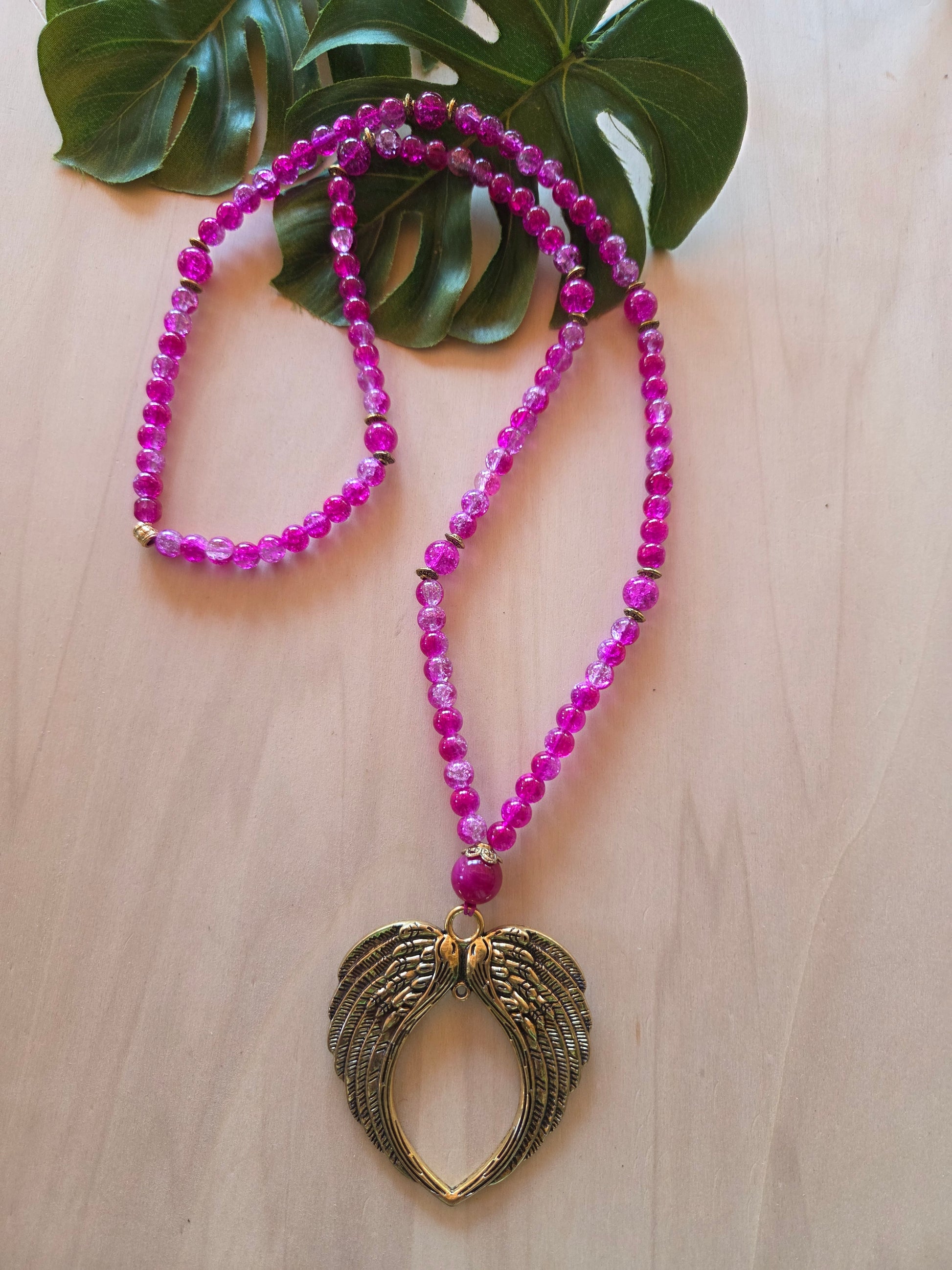 Halskette Material Glas/Acryl Lila Metall goldfarbig