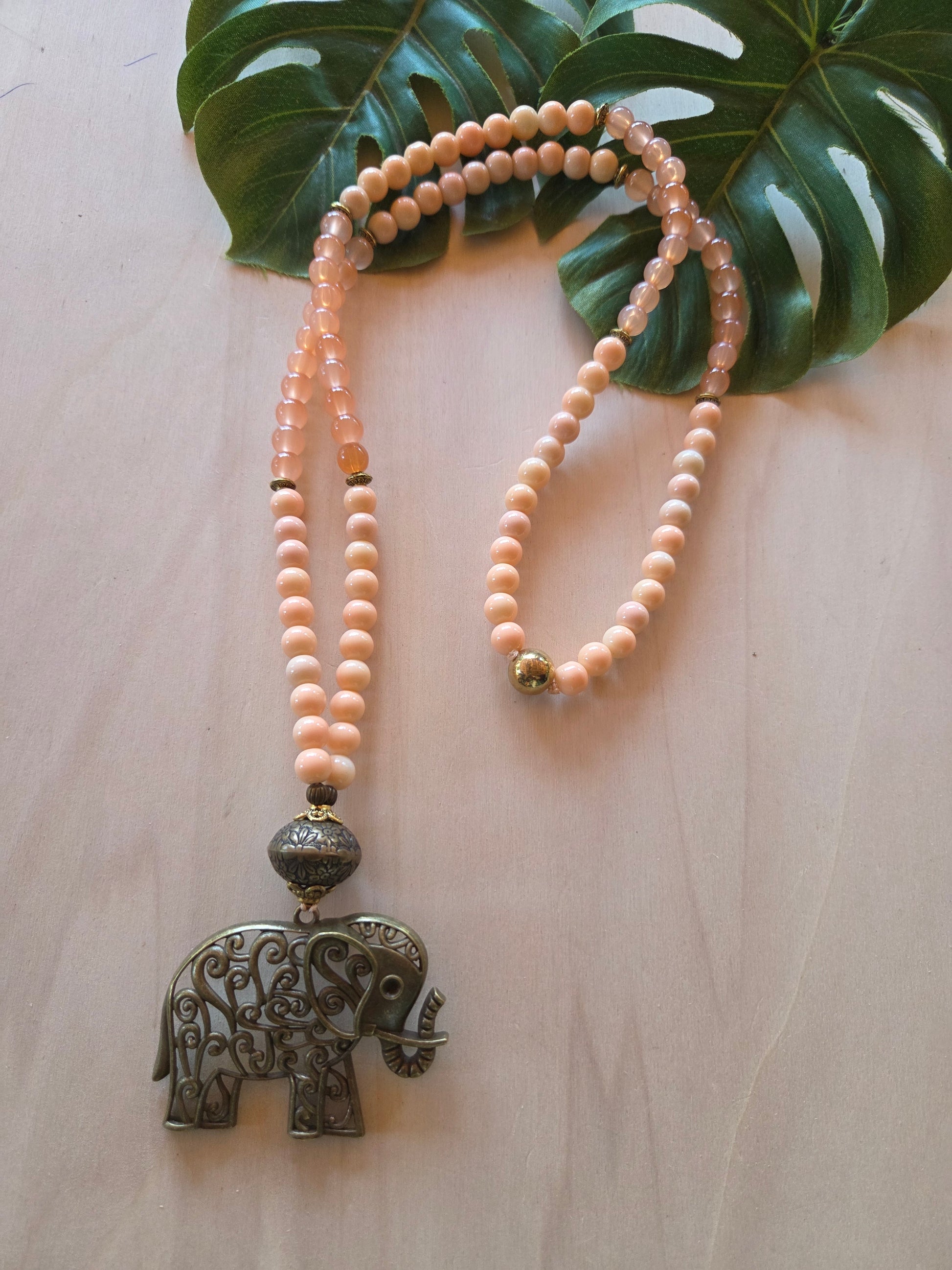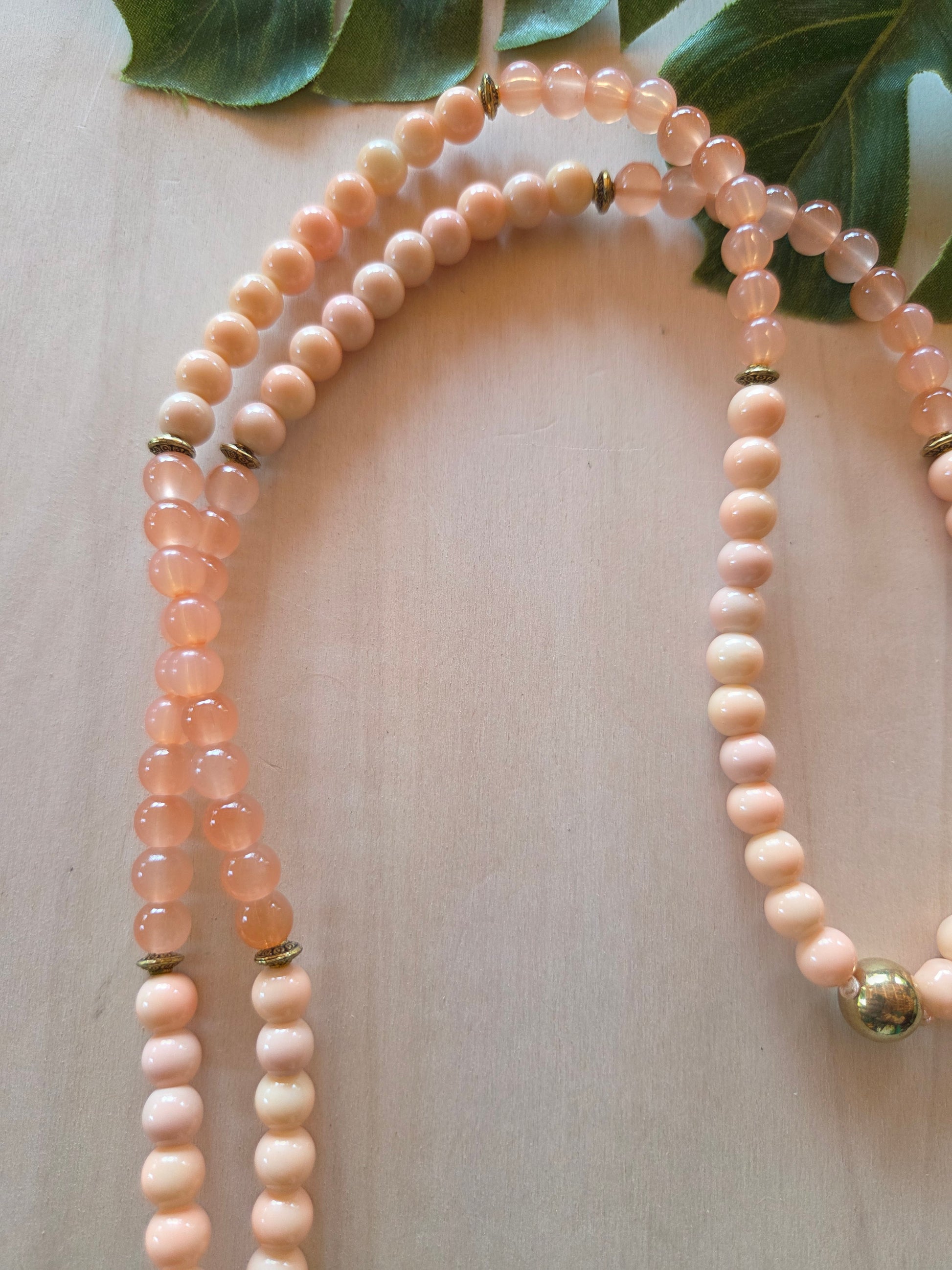 Halskette Material Stein Glas FB Lachs. Metall goldfarbig