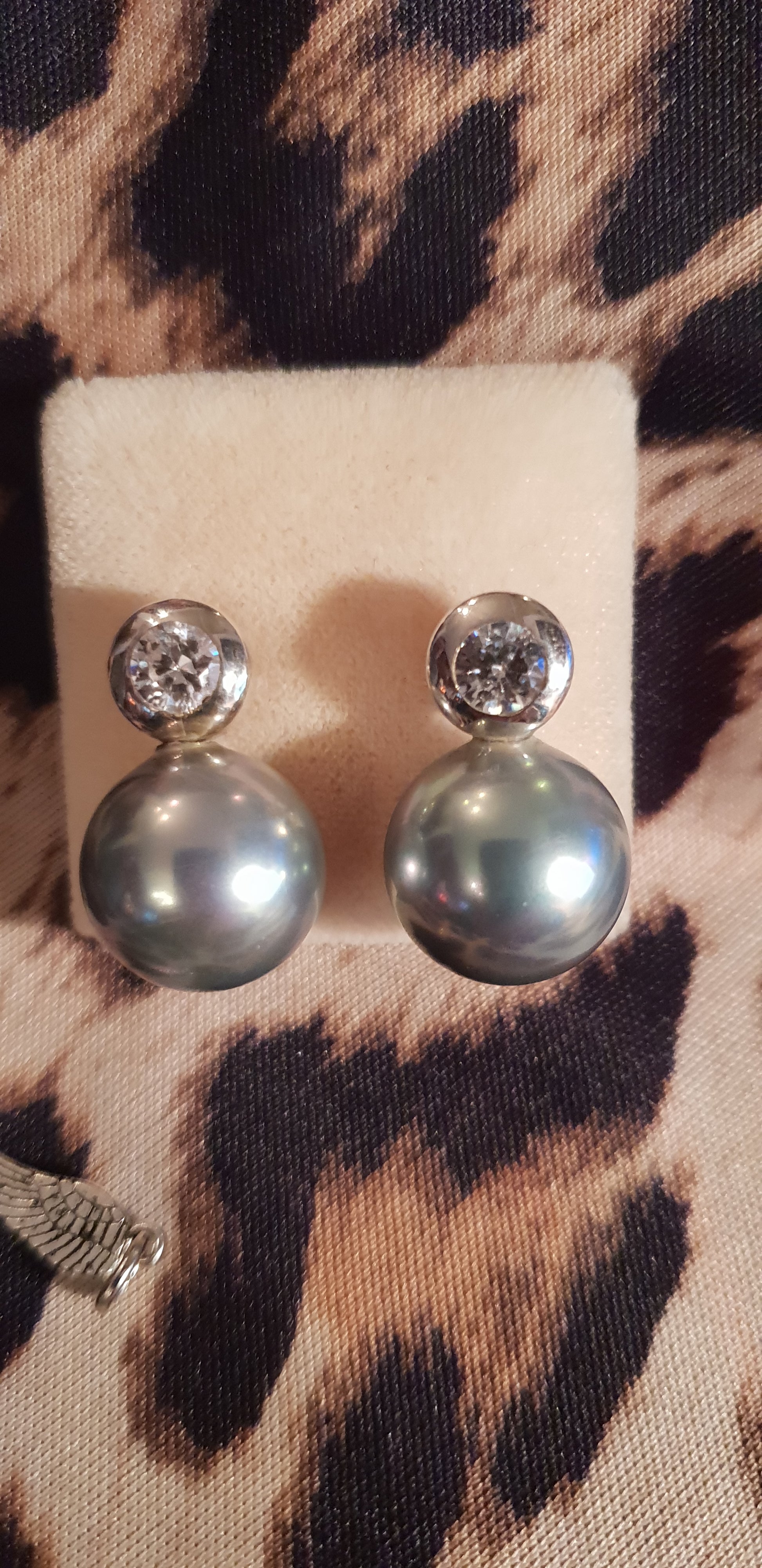 Ohrstecker, echte SOUTH CHINA PEARLS, ca. 12 mm, graublau , 985er Sterling Silber.