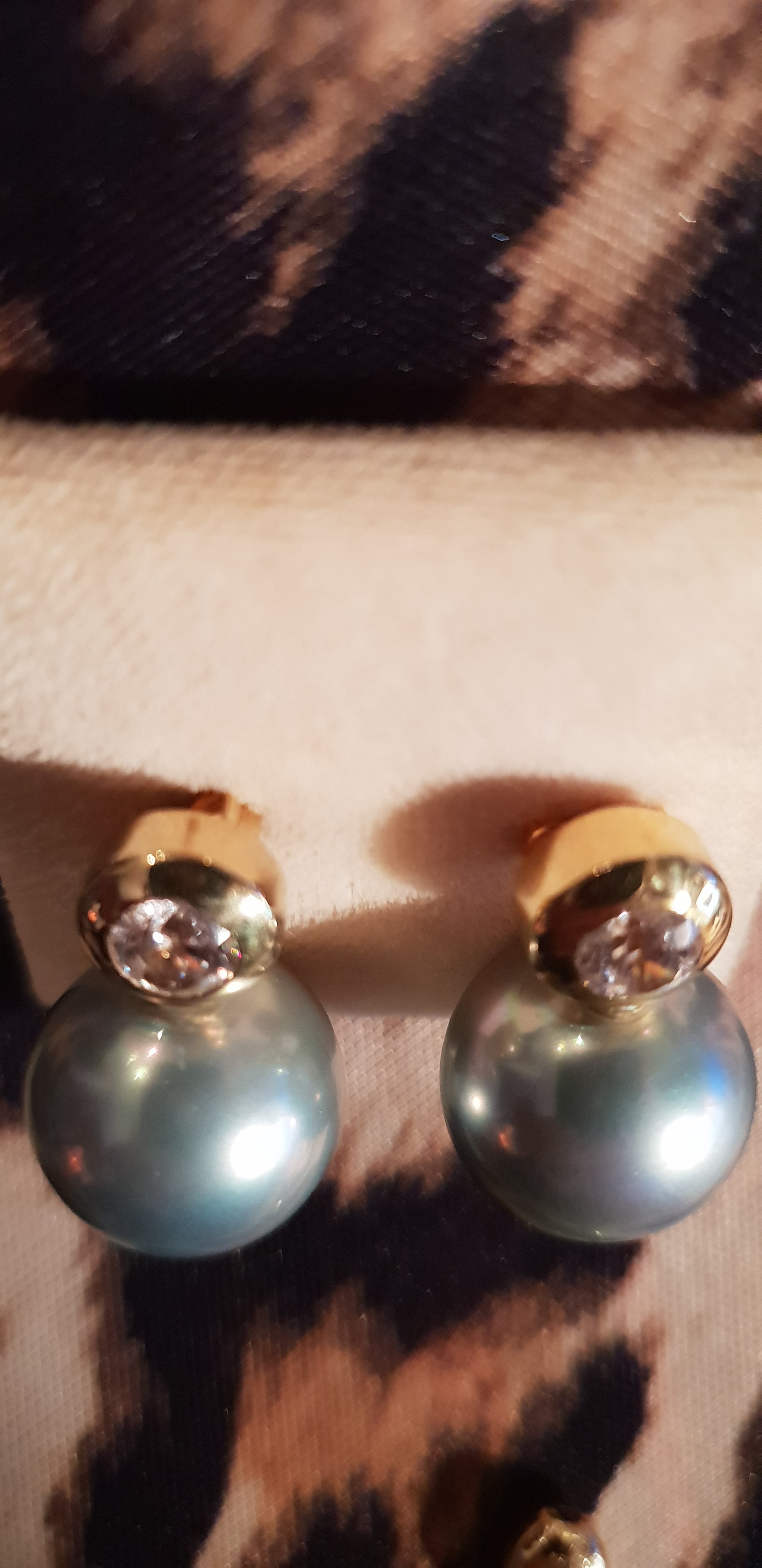 Ohrstecker, echte SOUTH CHINA PEARLS, ca. 12 mm, silbergrau , 985er Sterling Silber, Zirkonia.