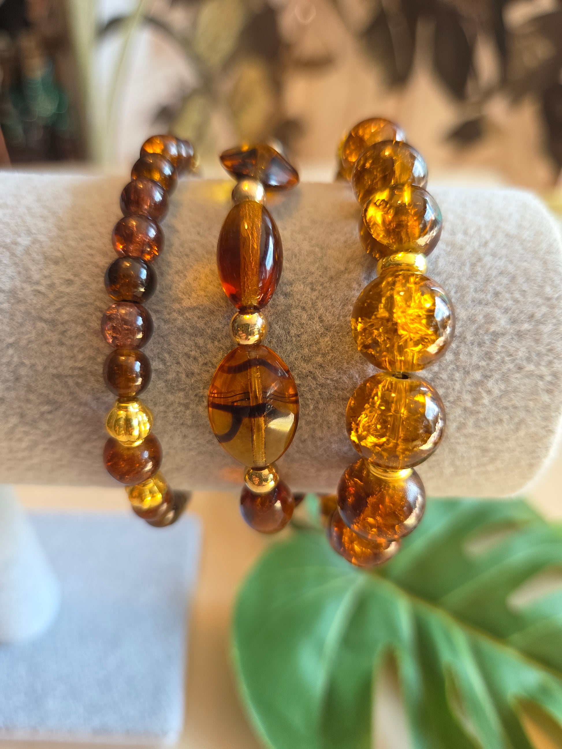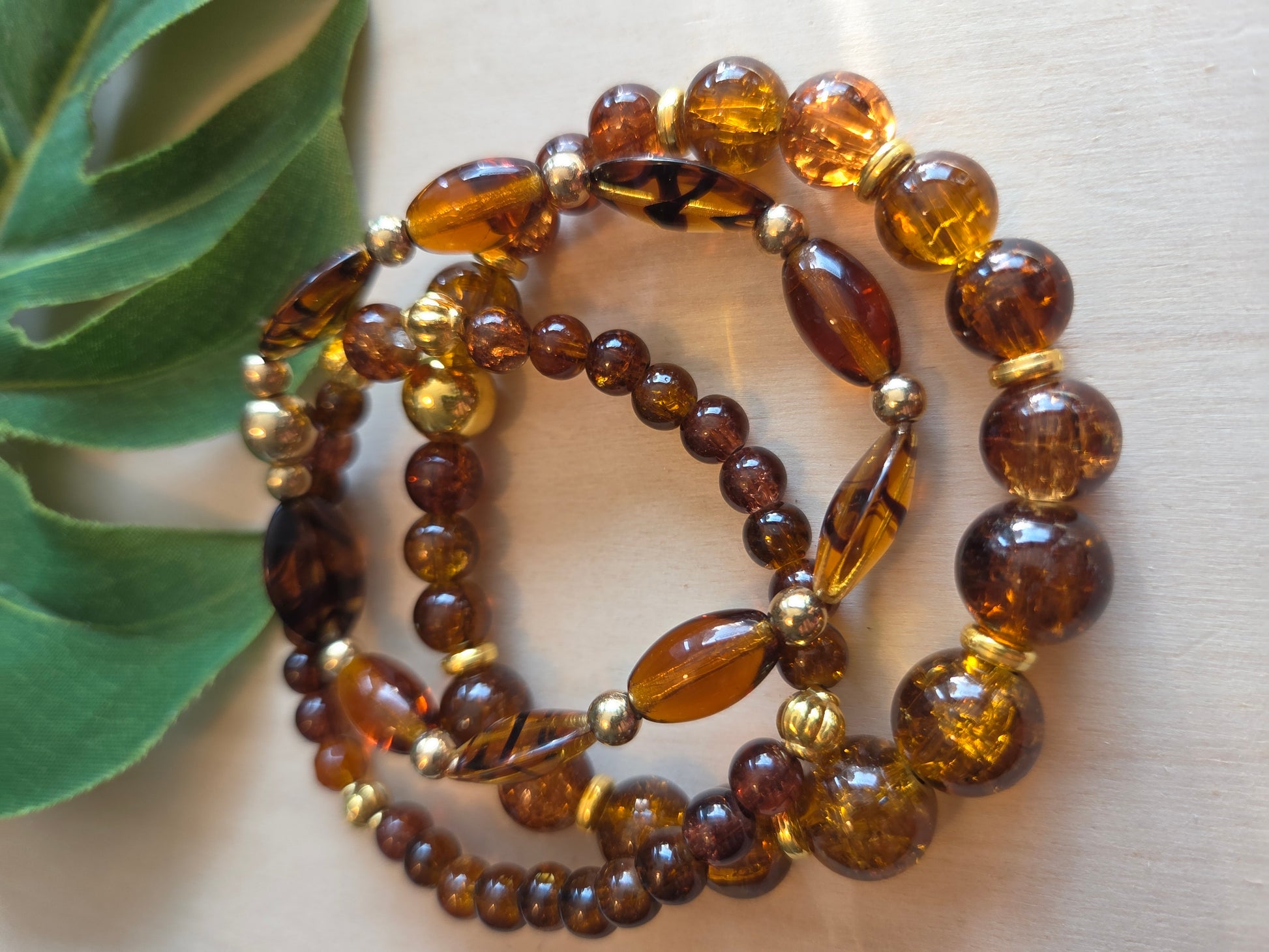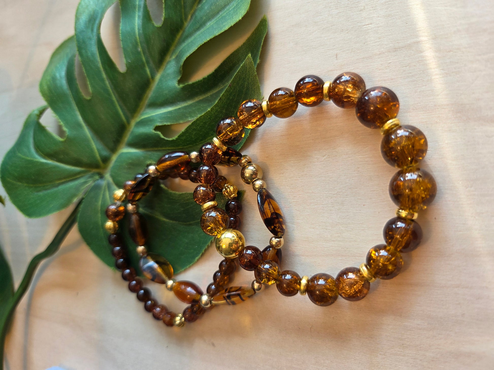 Perlenarmbänder braun Glas Bernsteinfarbig